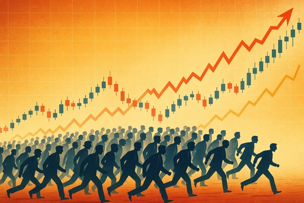 رفتار گلهای زمانی رخ میدهد که معاملهگران بدون تحلیل مستقل و صرفاً با پیروی از جمعیت بازار تصمیم میگیرند. این رفتار در بازار کریپتو بیشتر دیده میشود، زیرا بخش بزرگی از کاربران آن تازهوارد و احساسی هستند.