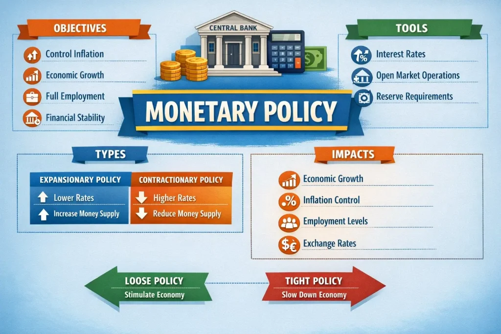 سیاستهای پولی انقباضی و انبساطی چارچوب کلی اصلاحات ارزی را شکل میدهند. سیاست انقباضی با هدف کاهش نقدینگی و مهار تورم اجرا میشود و معمولاً به تقویت ارز میانجامد. در مقابل، سیاست انبساطی با افزایش نقدینگی، رشد اقتصادی را تحریک میکند و اغلب باعث تضعیف ارز میشود.